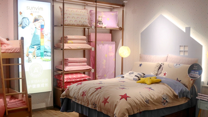 更上一層樓,盛裝迎客的二樓讓顧客感受到從愛情到親情的延續(xù)與升華。匠心獨運的家紡件套,童趣盎然的嬰童家紡,讓顧客信步間盡享家的溫暖、舒適與雅致。
